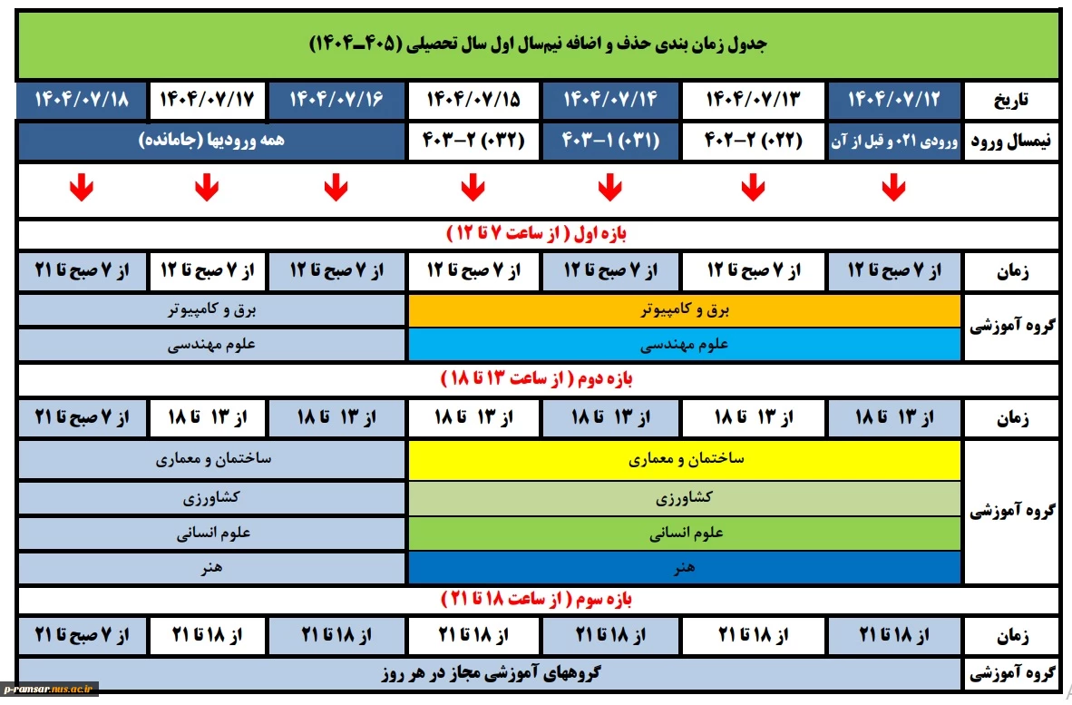 برنامه زمانی انتخاب واحد و حذف و اضافه نیمسال اول 1405-1404 (پاییز 1404) 2