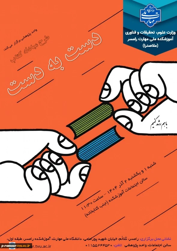 امتیاز دهید : برنامه های هفته جهانی کارآفرینی، هفته ملی کتاب و هفته ملی پژوهش 51 یکشنبه 18 آبان 1404 ساعت 19:26