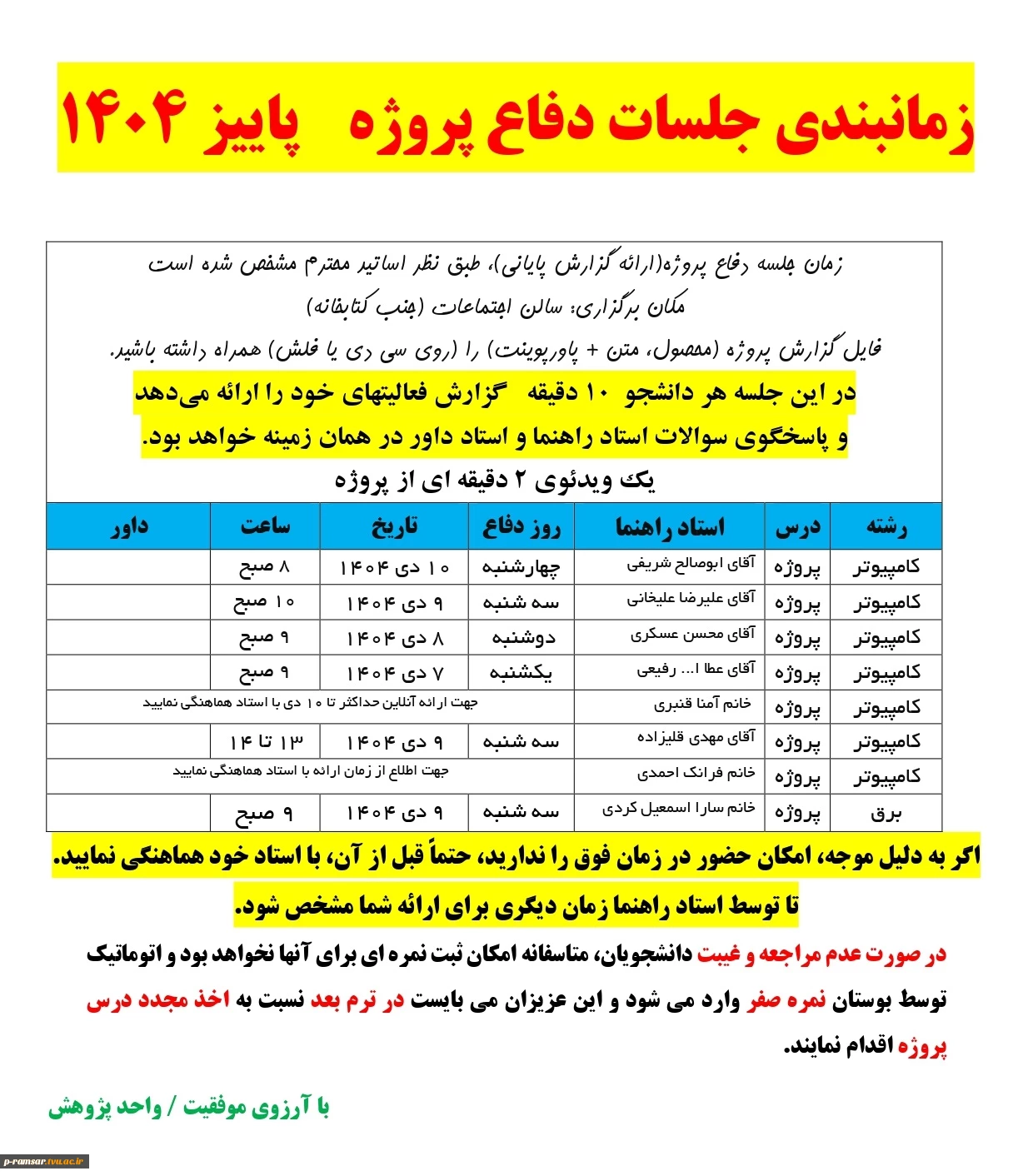 راهنمای گام به گام کارآموزی و پروژه - پاییز 1404 4